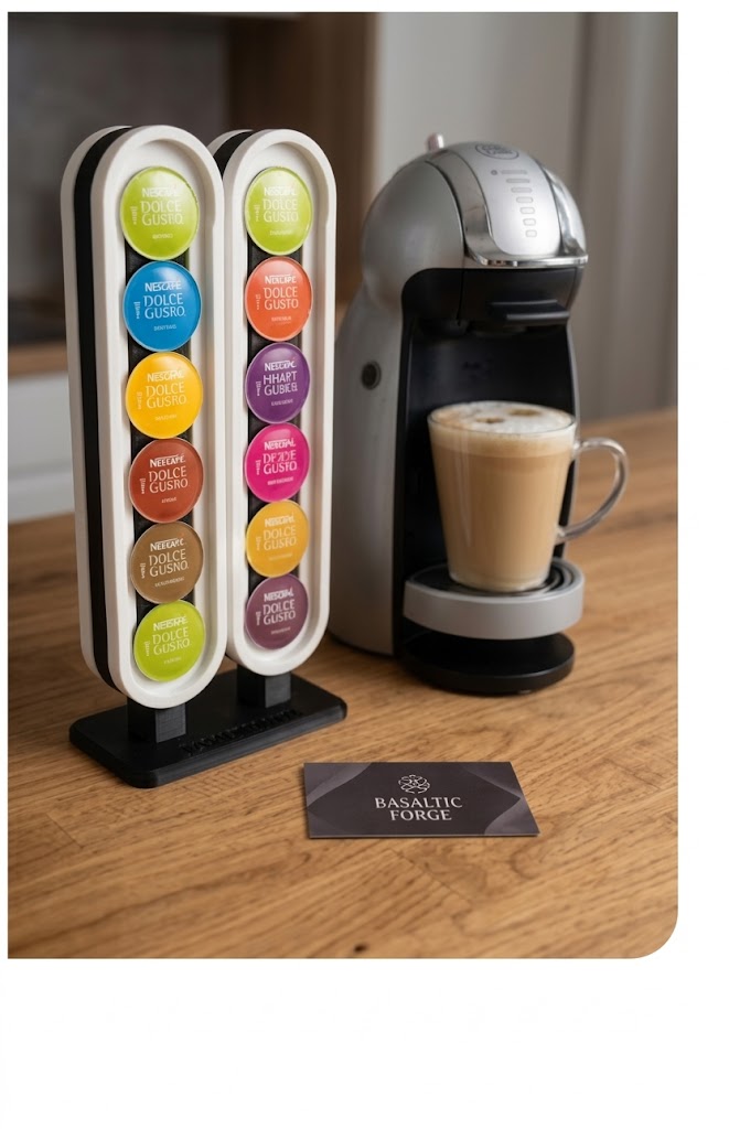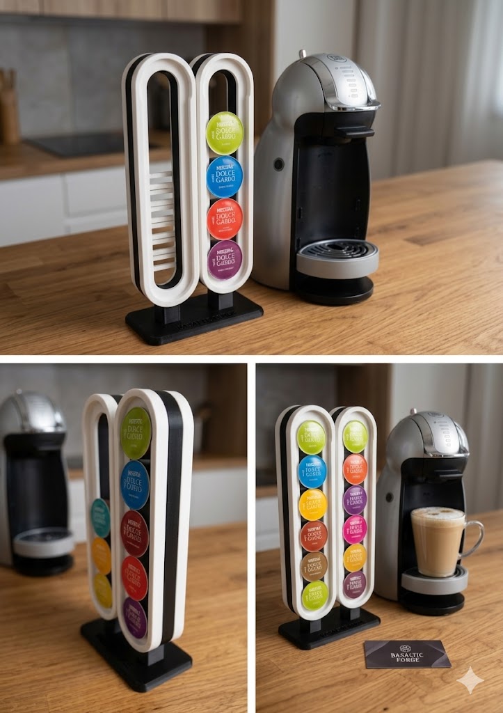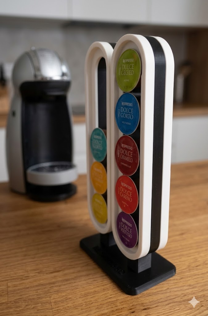 Organiza tus cápsulas de café con este porta cápsulas Dolce Gusto impreso en 3D, diseñado para optimizar el espacio y mejorar la accesibilidad en tu cocina.